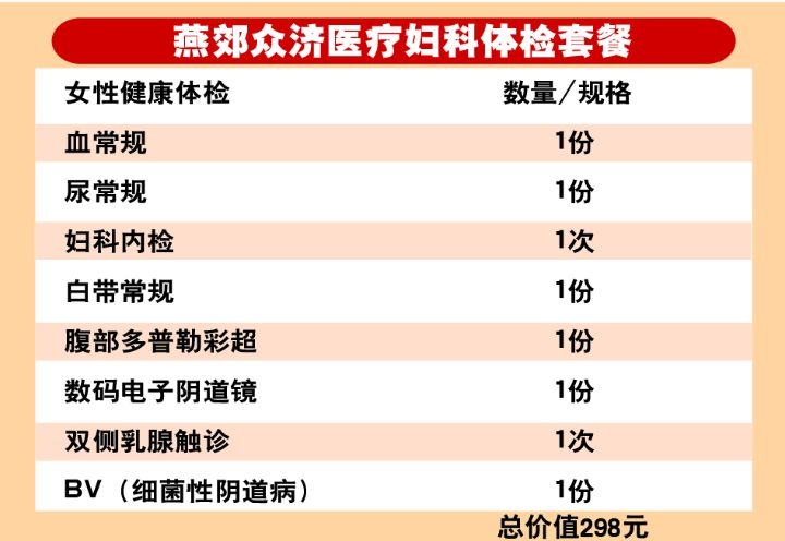 原价298元 暑期献礼钜惠仅需38元!燕郊众济医疗无隐形消费8大项体检项目,为女性的健康保驾护航!