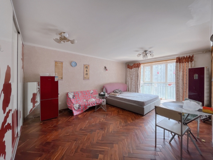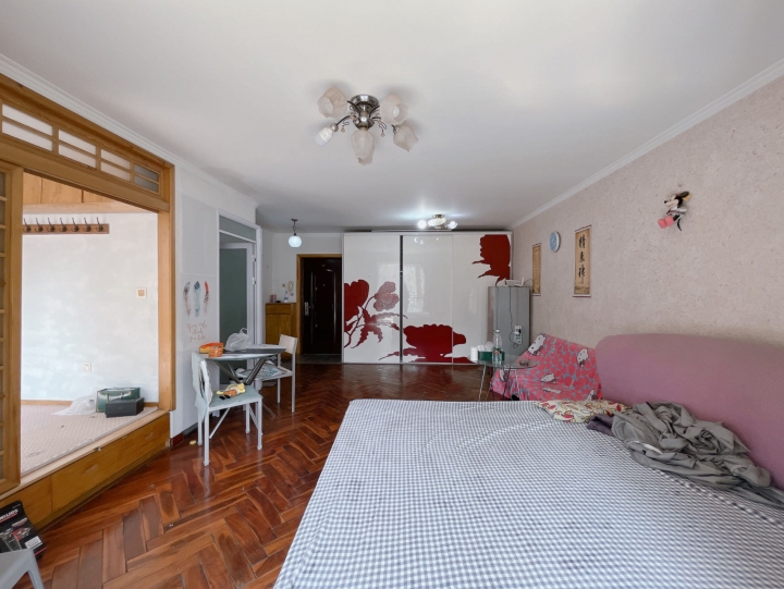 南向一室一厅58平米,有两张床,一个大床,一个榻榻米...