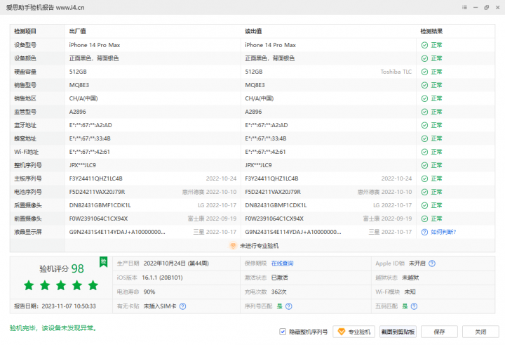 自用苹果14pm 512G白色电池健康90% 保修期还有一个月...