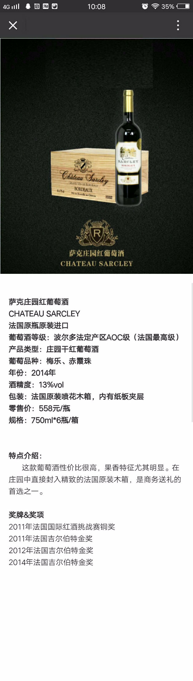 本人在机场海关这边上班,公司距离缉私局200米距离。产品保真。法国波尔多AOC级萨克庄园原瓶进口!!口岸直提,去掉很多中间环节,性价比很高!!89元一瓶,一箱6瓶,一瓶代发,不包邮!!